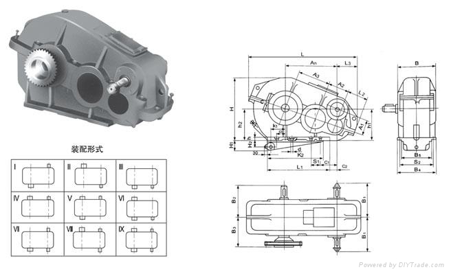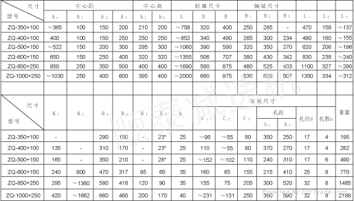 ZQ型大速比減速器,其輸入、輸出軸的位置和安裝尺寸盡量與ZQ型保持不變、箱體部分面做成傾斜,增加的高速級在上方。有ZQ350+100、ZQ400+100齒輪減速機、ZQ500+150、ZQ650+150大速比減速機、ZQ850+250大速比減速器和ZQ1000+250齒輪減速機六個規格.