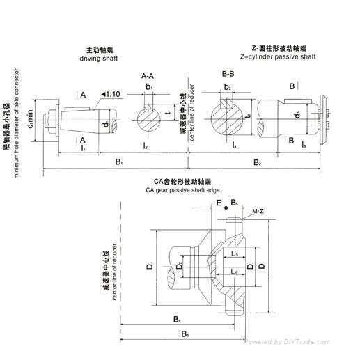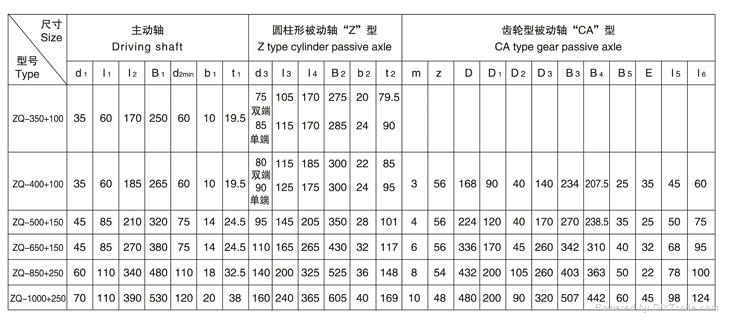 ZQ1000+250大速比齒輪減速機重約為2189kg,高速軸直徑為70,出軸長度為110,主軸直徑為160,出軸型式有:圓柱形被動軸端,CA齒輪形被動軸端。有九種裝配型式。