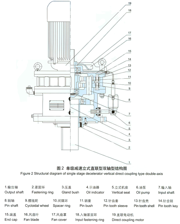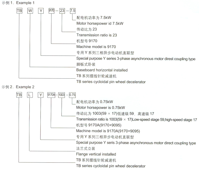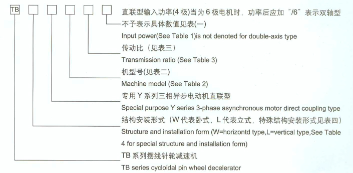 TBLY擺線針輪減速機為專用異步電機直聯型、法蘭式立式安裝